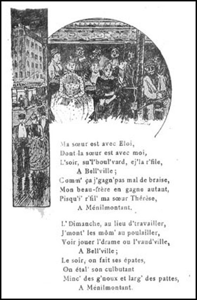 "À la Bastille" est une de celles-là, de même que"Nini peau d'chien", "À Montmertre" (sic) , "Le Chat Noir", "À Grenelle", "À Saint-Lazare", "À Batignolles"... et l'on pourrait continuer comme ça pendant cinquante lignes.