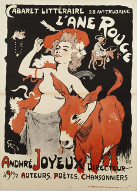 André Lesage, dit Joyeux, s'est suicidé dans un accès de fièvre chaude le 4 septembre 1899. II était alors directeur du cabaret de l'Ane-Rouge, qu'il avait acquis en 1898, et n'avait pas encore accompli sa trentième année. Il avait été présenté une dizaine d'années auparavant à Rodolphe Salis par notre regretté camarade Adrien Désamy, aimable poète qui fournit longtemps à l'Illustration des vers qui commentaient les dessins de ce journal. Absent pendant trois ans pour remplir ses devoirs militaires, Joyeux revint à Montmartre en 1894, entra à l'Ane-Rouge, avec Gabriel Salis, retourna au Chat-Noir et succéda ensuite à Marcel Legay dans la direction des Noctambules. Il composait des chansons d'actualité et des parodies dont quelques-unes étaient fort réussies. C'était un charmant camarade, qui ne prêta jamais à la médisance.