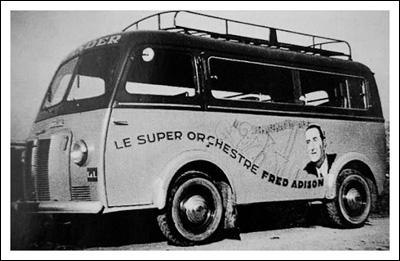 À la trompette, Albert Duvignac, au sax alto, René Lawrence, au piano, André Boulant et à la batterie, Fred Adison qui se nomme encore Albert... - Succès partout où ils passent. - De longs mois au caveau de l'Aubette de Strasbourg mettent fin temporairement à leurs pérégrinations provinciales et, fin 1931 (son chef n'a alors que 23 ans), Fred Adison et son orchestre est engagé à la Taverne Fantasio, rue du Faubourg-Montmartre, à Paris !