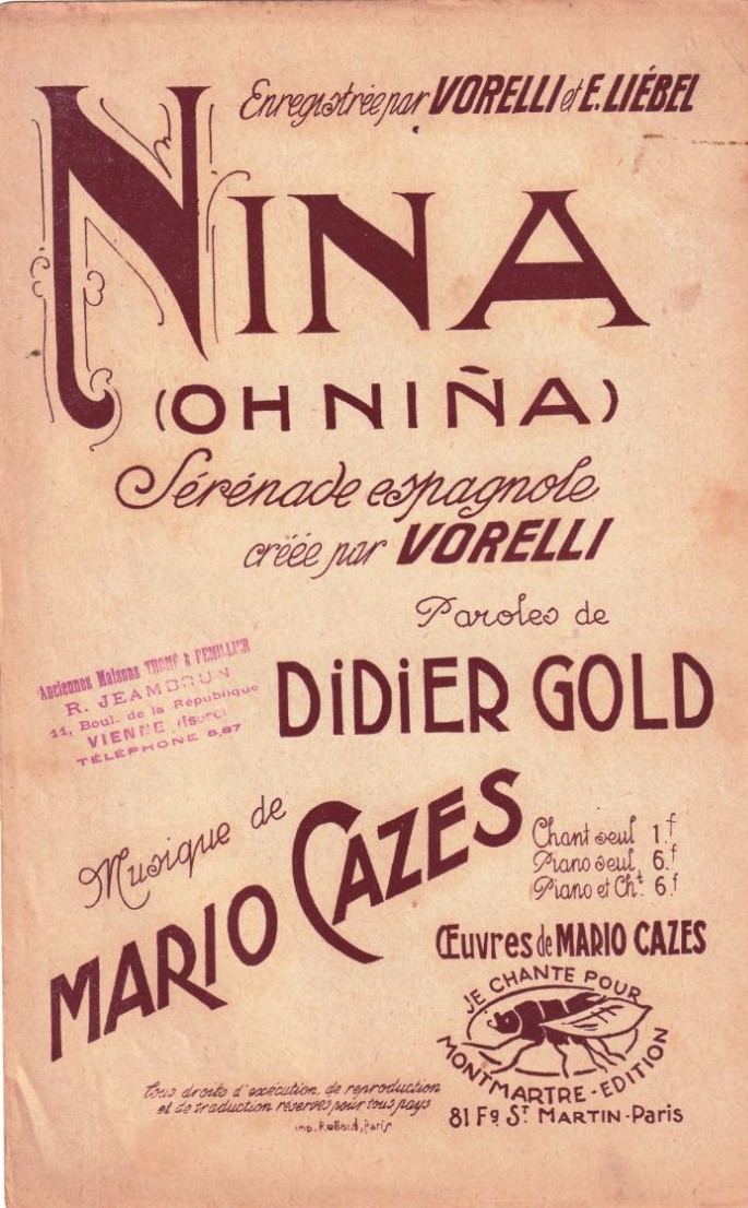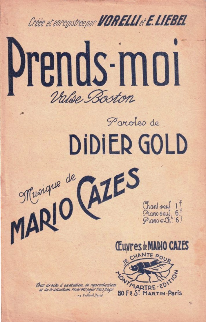 Par Emma Liebel, paroles de Philippe Goudard, en 1926 chez Odéon :