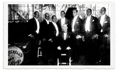 À noter sur la photo : le deuxième à partir de la droite : Sidney Bechet qui, ayant à plusieurs fois fait partie de l'ensemble de Mitchell, n'a participé à aucun de ses enregistrements.