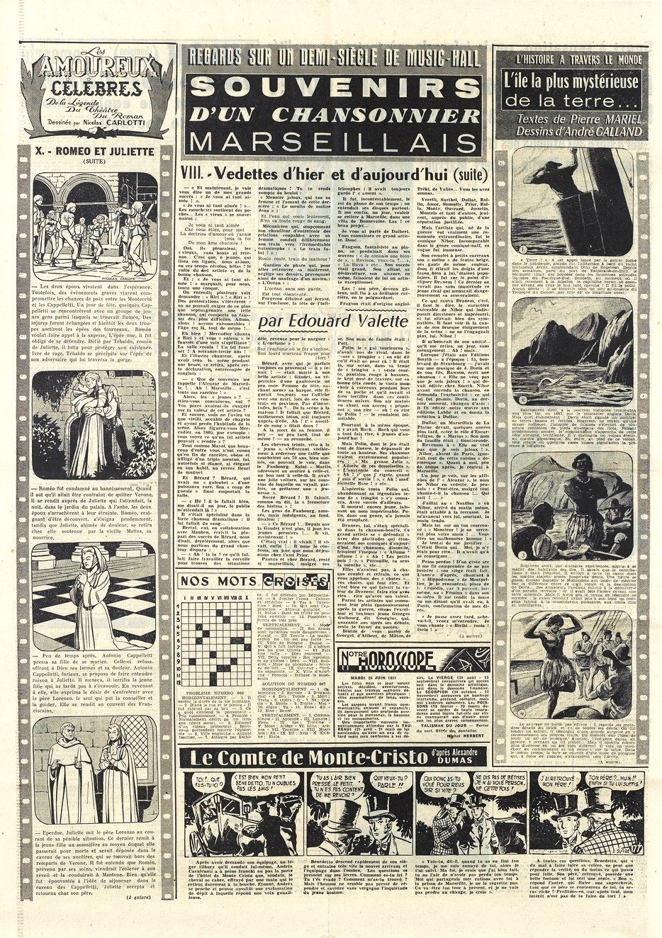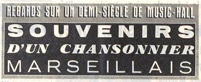 Article paru sous la rubrique "Regards sur un demi-siècle de Music-Hall" : Souvenirs d'un chansonnier marseillais (Edouard Valette) dans le journal LE SOIR, (quotidien marseillais) du 25 juin 1951 :