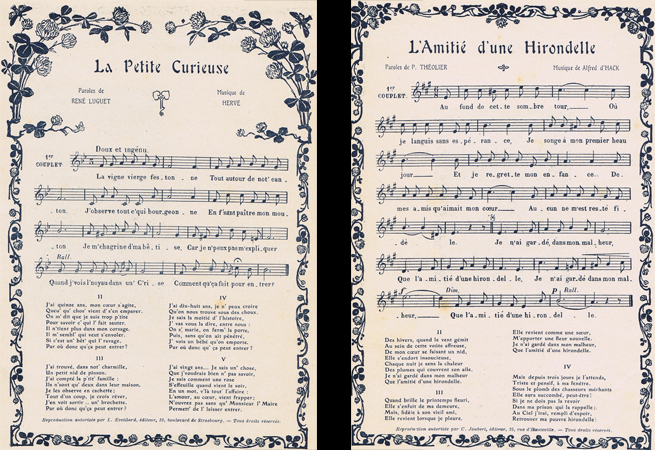 C'est elle qui a créé cette jolie et grivoise chansonnette : La Petite Curieuse, de René Luguet [Alexandre Bénéfand dit, 1813-1904], musique d'Hervé, que chantent toujours les diseuses, expertes à lancer le sous-entendu.