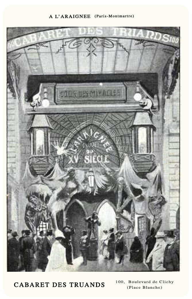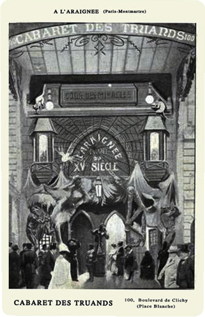 Echec ! Arrive un nouveau propriétaire qui veut faire dans l'excentrique comme son voisin Antonin du boulevard au n° 34 le Cabaret du Néant et au n°53 le Cabaret du Ciel et de l'Enfer. Va pour la Taverne des Truands ! Qui devient le Cabaret des Truands mais aussi l'A L'Araignée, à cause de sa façade couverte d'une multitude de figures épouvantables, dont une araignée tissant sa toile, traitées en haut-relief ! Bis repetita : encore un échec !