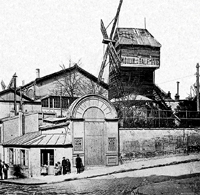 Valentin (le Désossé) à leurs débuts. Ouvert 4 jours par semaine jusqu'en 1914. Sauvé de la démolition, en 1915, déplacé en 1924, music-hall jusqu'en 1966, salle pour émissions radio-télé (de feu l'O.R.T.F.) jusqu'en 1964, restauré en 1978. Ses ailes recommencent à tourner en 2001, date où on l'intègre à une résidence privée.