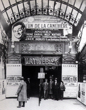 Yves Montand. En 1950, l'Alcazar revient complètement à la chanson. En faillite en 1963, il sera réaménagé et relancé en 1965 avec un concert triomphal de... Enrico Macias. Mais voilà, en 1966 rien ne va plus et le plus célèbre caf'conc' de province devient un... entrepôt de meubles.