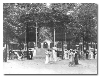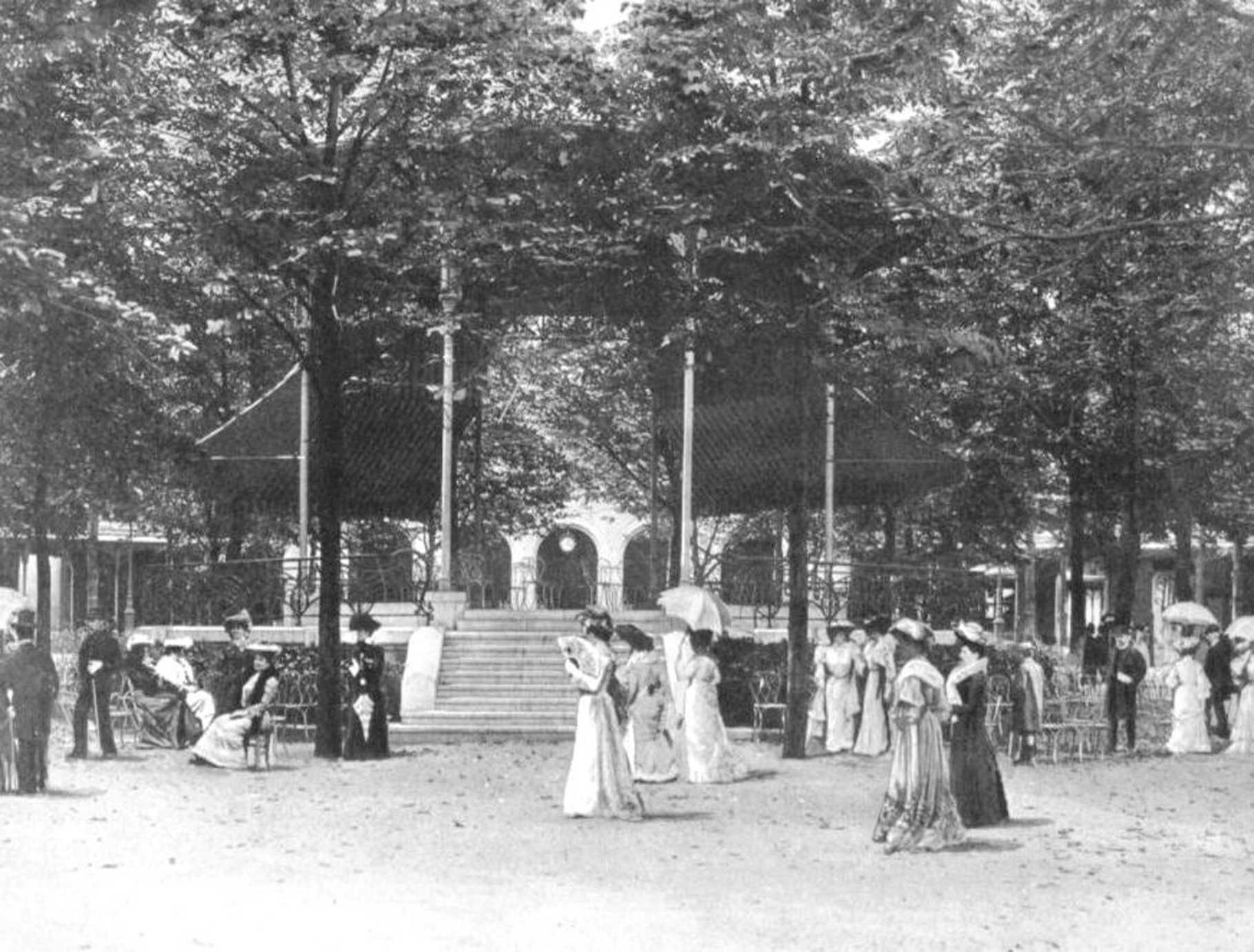 Construit en 1866, il remplace la simple estrade en bois installée à proximité immédiate de la façade principale de l’établissement de jeux et de divertissements.