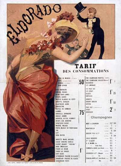 Antoine Renard, le chef d'orchestre, mettra en musique et chantera dès 1868 sur la scène de l'Eldorado un poème de Jean-Baptiste Clément, écrit deux ans plus tôt, qui deviendra, pour commémorer le souvenir de la Commune, un hymne à la Liberté, repris jusqu'à nos jours par le monde entier : "Le Temps des Cerises".1868 voit débuter à l'Eldorado la première ingénue perverse, Anna Judic, ainsi que celui qui deviendra la vedette incontestée du Caf'Conc, Paulus. Grâce à l'Eldorado, seront autorisés sur la scène des cafés-concert, " la présentation d'artistes travestis, le montage de petites pièces, de pantomimes, de numéros de danse ainsi que les changements de décors. Ensuite viennent des petites choses comiques, des courts vaudevilles, des imitations et des bouts d'opérettes, des chansons populaires, ingénues et libertines, grivoises ou franchement équivoques. Le répertoire du café-concert saura en tirer les leçons : à l'Eldorado, le rire est roi. Après la légèreté du Second Empire et 1870, la mode passe au patriotisme. C'est Amiati et ses chants revanchards : "Le Clairon""Le Maitre d'ecole alsacien"', Rosa Bordas crée "Les cuirassiers de Reichshoffen" (voir les mémoires de Paulus au chapitre 12) et Chretienno, en septembre 1871, "Vous n'aurez pas l'Alsace et la Lorraine". Par ses programmes à succès, ses vedettes en vogue, l'Eldorado acquerra le "titre" officieux de Conservatoire du Caf'Conc'.