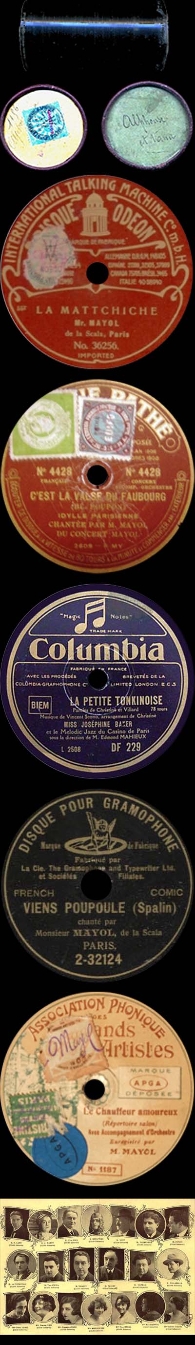 Et l'on croit trop souvent que, parce qu'un titre a été publié en plusieurs milliers d'exemplaires, il sera facile d'en trouver une copie. Erreur ! Plus un titre a été populaire... plus il a été joué... et plus il a été joué, plus il y a eu de chances d'être brisé, égratigné, rendu inaudible... - C'est ainsi que nous avons cherché pendant plusieurs années une version de "Viens, Poupoule !" de Mayol... antérieure à... 1932 !