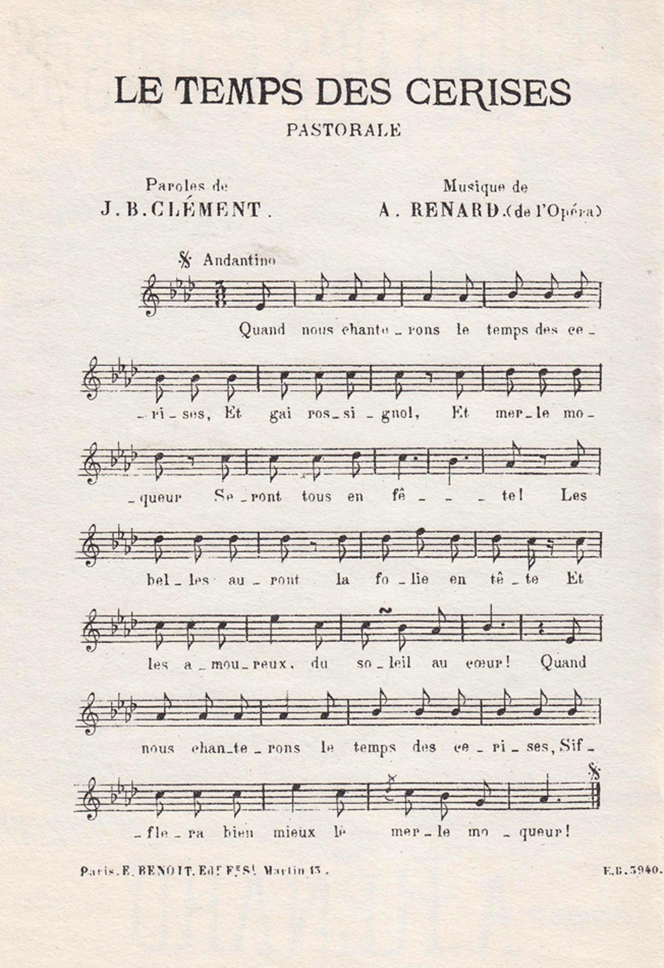 1868 - Paroles de Jean-Baptiste Clément, musique d'Antoine Renard.