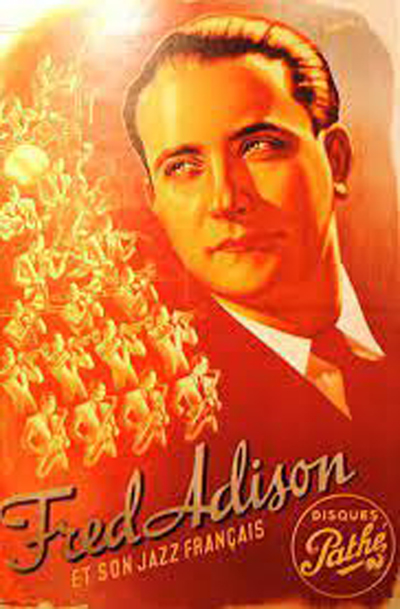 À la trompette, Albert Duvignac, au sax alto, René Lawrence, au piano, André Boulant et à la batterie, Fred Adison qui se nomme encore Albert... - Succès partout où ils passent. - De longs mois au caveau de l'Aubette de Strasbourg mettent fin temporairement à leurs pérégrinations provinciales et, fin 1931 (son chef n'a alors que 23 ans), Fred Adison et son orchestre est engagé à la Taverne Fantasio, rue du Faubourg-Montmartre, à Paris !