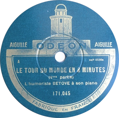 Deux faces de... "Le tour du monde en 8 minutes", un disque que nous a communiqué un collectionneur, Monsieur David Silvestre (chaine : lysgauty1), que nous remercions :