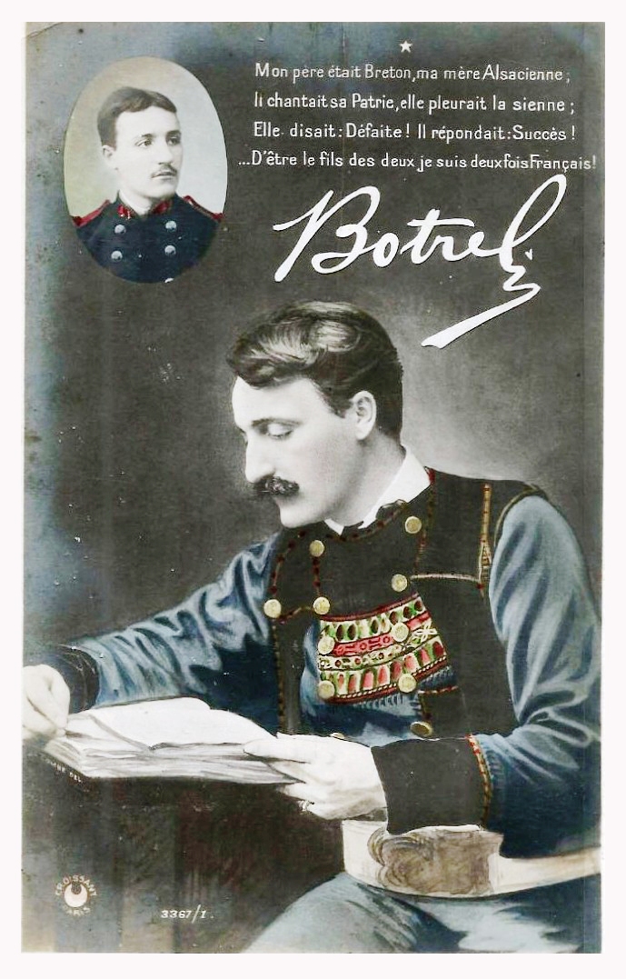 Taille moyenne, démarche élégante, physionomie ouverte et souriante, l'œil vif et franc, le nez busqué légèrement; la voix douce, sans grand éclat, mais claire et d'un timbre agréable; tel est le "barde breton" Théodore Botrel, né à Dinan (Côtes-du-Nord), en 1870, d'une famille qu'avaient ruinée des spéculations malheureuses et qui ne put que l'envoyer à l'école primaire. C'est dire qu'il est fils de ses œuvres.