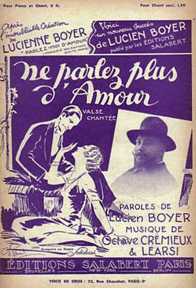 Lucien Boyer, que sa tournée mondiale semble avoir assagi, revient aux Quat'z'Arts, puis se lance dans la composition. Il écrit d'abord pour Mistinguett et les commandes arrivent : de Mayol, de Fragson, de Chevalier.