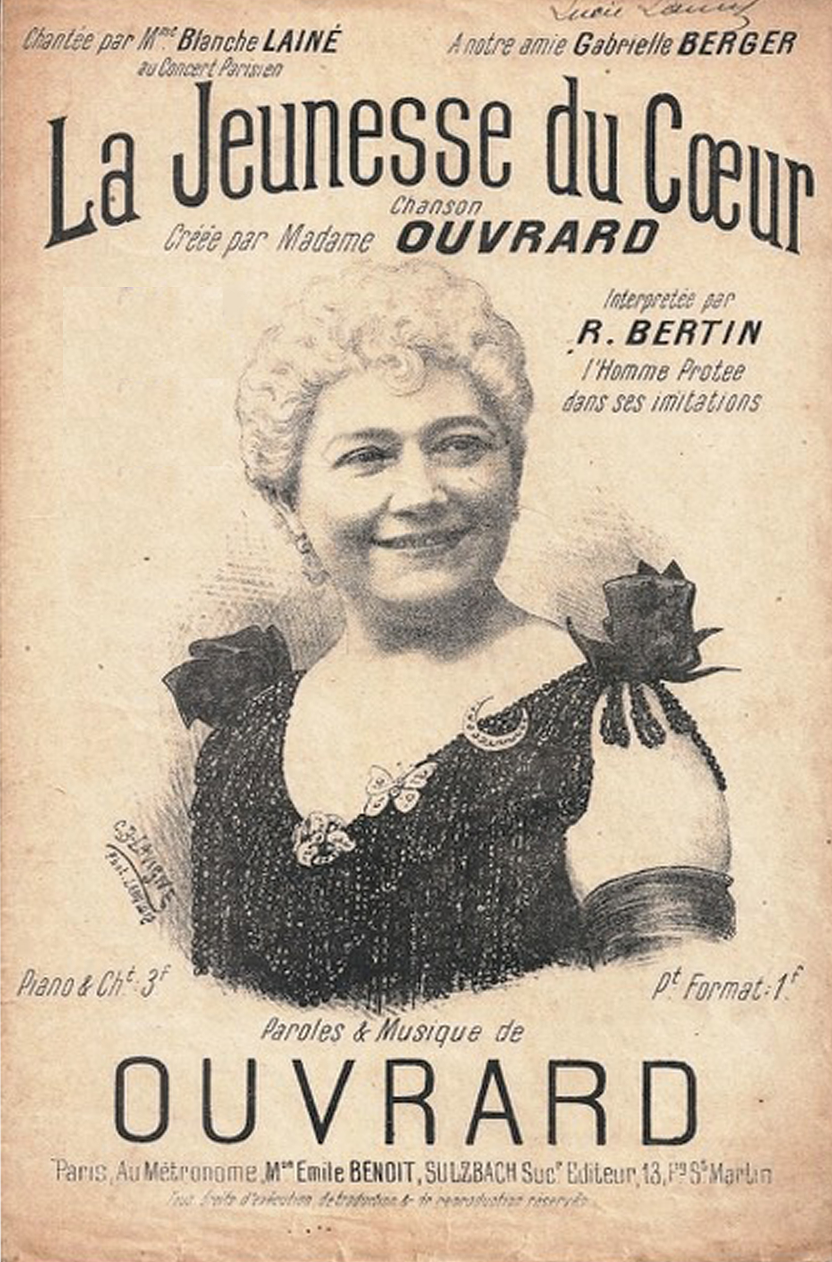 Elle brillera bientôt au premier rang et, comme Thérésa, abordant le genre sérieux, se montrera sous un nouveau jour, quand, devenue Mme Ouvrard, elle cueillera couronnes et lauriers, au cours de tournées triomphales en province."