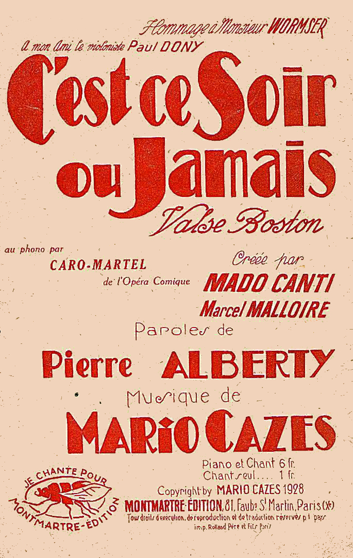 E compositeur, violoniste et chef d'orchestre des Années Folles, c'est Marius Joseph Cazès, ce Biterrois né , le 17 juillet 1890 ! Énorme succès dans les années '20 et '30 et légion d'honneur, tout de même ! Le journal Paris le Soir lui donne de "l'acrobate de l'archet" ! Beaucoup lui doive ! Voyez plutôt, celles et ceux pour qui il a écrit des mélodies : Bérard, Fred Gouin, Berthe Sylva, Emma Liebel, Carmen Vildez.