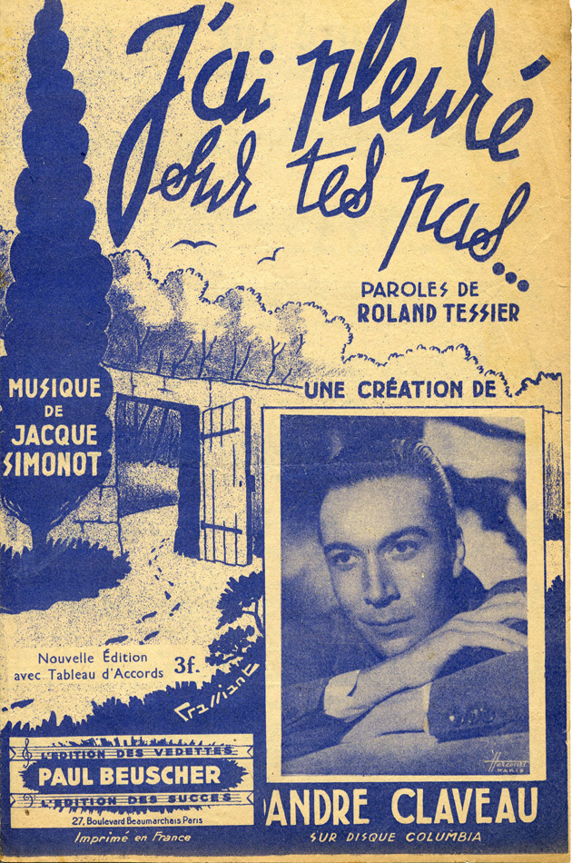 Et puis un deuxième, datant de 1943, un tango que Tino Rossi n'hésitera à mettre à son répertoire [de Roland Tessier (paroles) et de Jacques Simonot (musique)] :