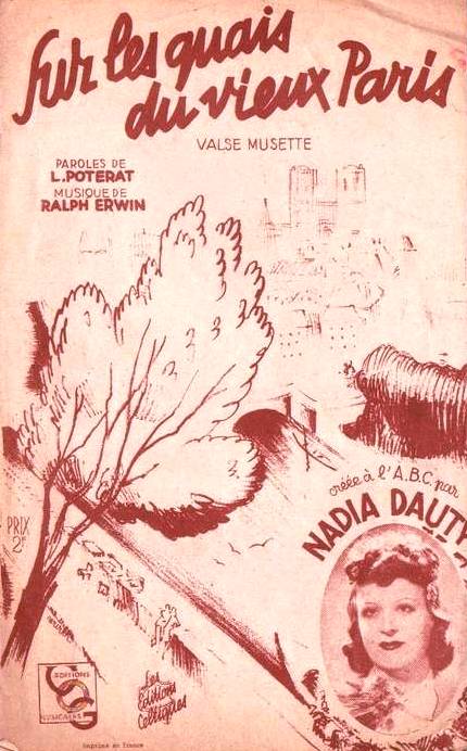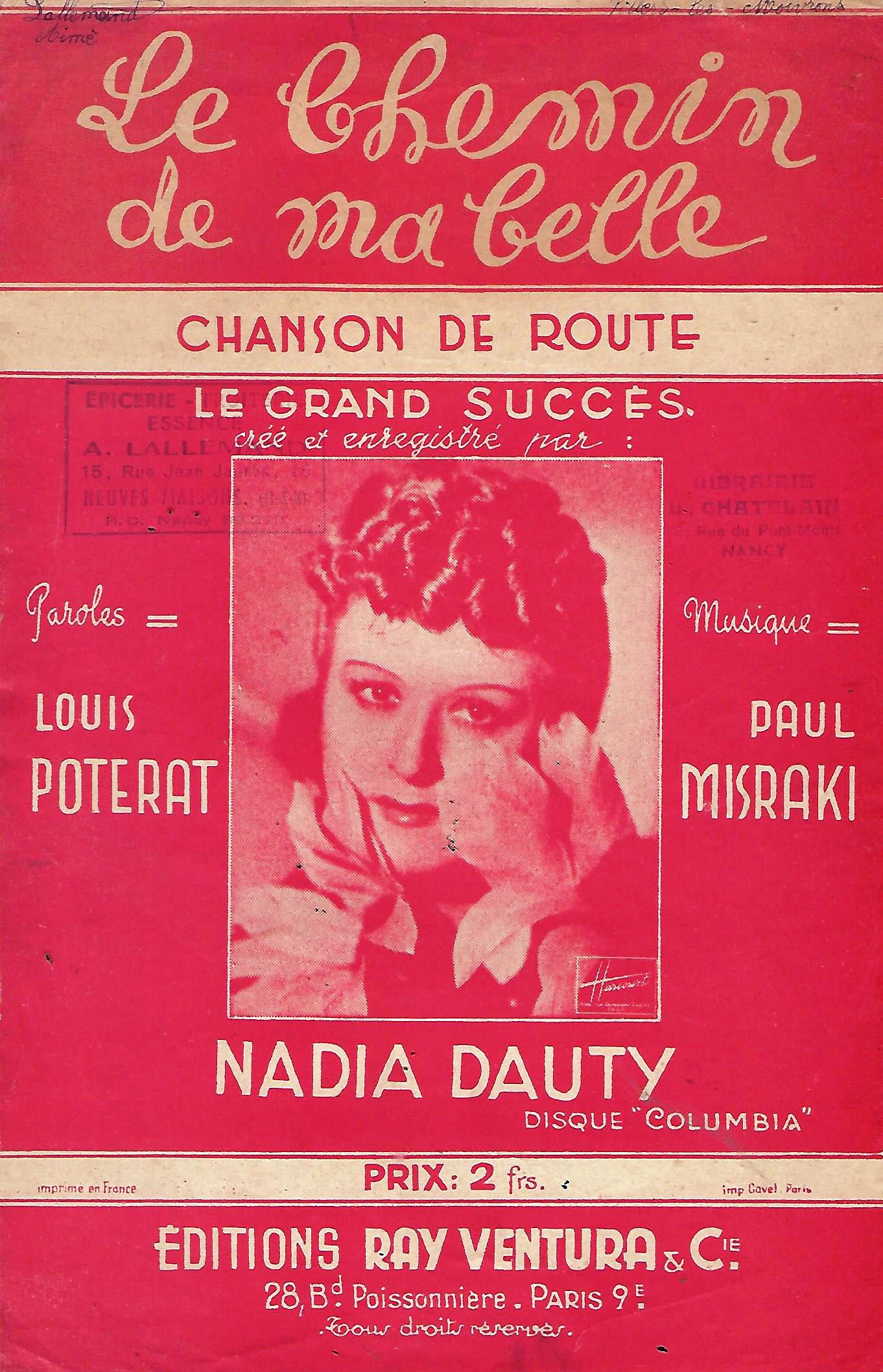 Son tour de chant, très varié, comprend alors "En ce temps-là", "Des millions de Français", "Amigo mio". Nadia Dauty l'enregistra au côté de Fred Gouin, alors grande vedette du disque au début des années trente, un rare disque Odéon de 30 cm : "Un vieux farceur" et "La demande en mariage".