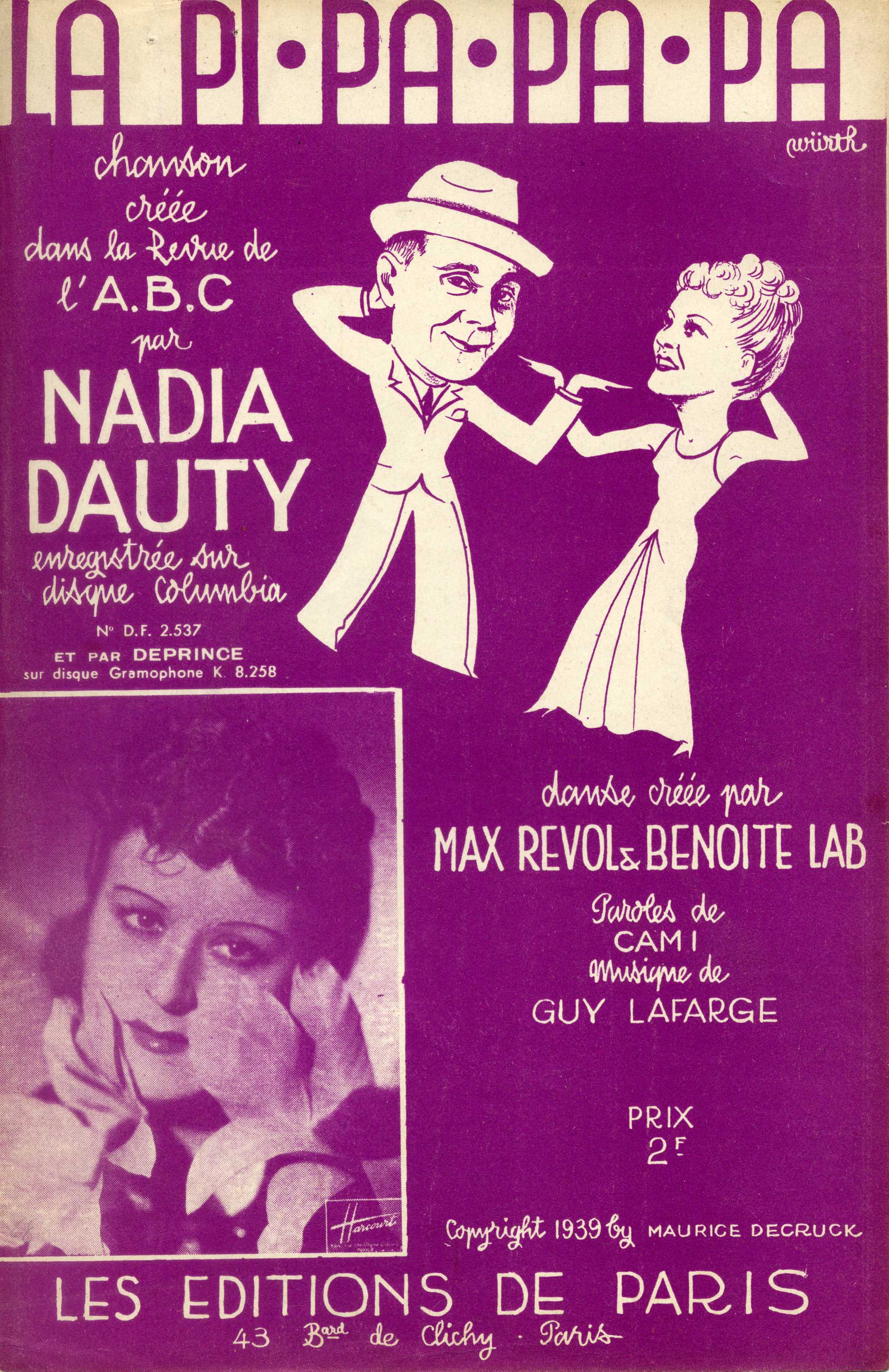 Poursuivant sa carrière dans l'opérette : Frasquita, Princesse Czardas, La Veuve Joyeuse.. elle ira jusqu'à chanter Carmen à l'Opéra. Mitty Goldin, directeur de l'A.B.C. la remarque et la fait débuter le 27 mai 1938. André Thérive, critique de Libert, s'enthousiasme : "Je viens de voir naître une vedette et, je crois bien, une grande vedette : elle s'appelle Nadia Dauty et on peut prédire qu'elle va égaler ou ?clipser toutes les gloires féminines du music-hall... Elle est divette, elle est diseuse, elle est mime, elle est cantatrice, je ne crois pas qu'il y ait des artistes aussi complets..." Et Thérive, qui note "son répertoire volontairement hétéroclite et bigarré" conclut de façon étonnante : "au même programme figure Lucienne Boyer, charmante, mais que la comparaison rapetisse notablement...". Mitty Goldin engagera à nouveau la chanteuse dans ses programmes de juin et décembre 1938. Jusqu'à la guerre, elle aura d'autres occasions de figurer à l'Européen et à l'Etoile.