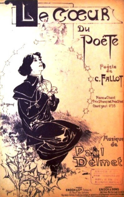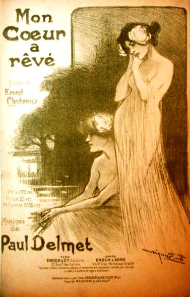 Ce fut une révélation; la note nouvelle apportée par le jeune compositeur enchanta le public, et Salis s'attacha définitivement Paul Delmet, qui, entré au Chat Noir en 1886, n'en quitta que pour suivre son camarade Meusy aux Décadents et au Chien-Noir. On l'a depuis entendu aux Quat'-z-Arts, au concert de l'Orient, aux Noctambules, au Carillon, au Tréteau-de-Tabarin, à Trianon, à la Boîte à Fursy et au Grillon, où il est encore en ce moment. Il a de plus concouru au succès des tournées du Chat Noir ainsi qu'à celle des Anciens Chansonniers du Chat-Noir avec Ferny, Meusy, Masson, Lefèvre, Hyspa, et dernièrement Jules Moy, Bonnaud et Montoya.