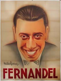 Mais nous parlons là du comédien. Or, Fernandel n'a pas débuté ni au théâtre, ni au cinéma : ce fut comme chanteur et monologuiste qu'il se fit d'abord connaître et c'est sous cet aspect que nous avons voulu le considérer dans le cadre de ce site dédié à la chanson française sauf que nous nous sommes butés à un problème : celui de séparer le personnage, justement, de ses interprétations.