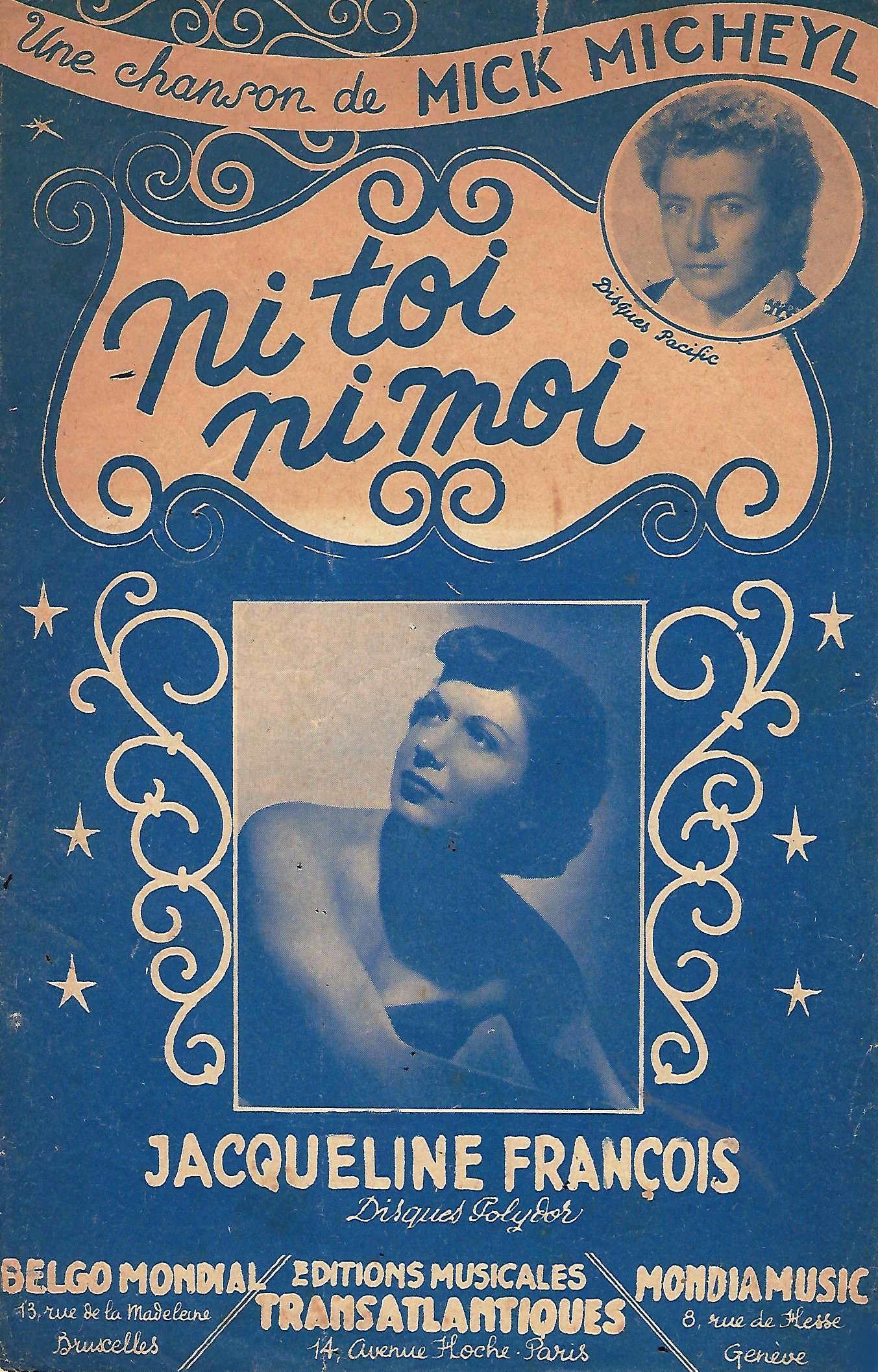 Le chef d'orchestre et compositeur Paul Durand - celui de "Seule ce soir"- que le chanteur Henri Decker (qui deviendra son mari) lui présente, lui conseille d'aller vers la chanson de charme. Excellente idée ! Le producteur Jacques Canetti lui fait enregistrer une adaptation américaine, "C'est le printemps" (It might as well be Spring), avec un orchestre de 40 musiciens dont 17 violons ! Et elle décroche le Grand Prix Charles Cros 1948 ! Viennent ensuite "La Seine", "Bolero" et surtout cette "Mademoiselle de Paris" qui restera sa chanson fétiche. Devenue en 1949, une ambassadrice de charme, la vague yéyé ne la touche pas. Elle sillonne le monde avec un répertoire peu renouvelé qui trouve de nouvelles couleurs grâce à de nouveaux arrangements. Son sens du rythme et sa voix bien timbrée plutôt à l'anglo-saxonne font merveille et son succès. En 1953, record du million de disques vendus en France ! 1955, changement de chef d'orchestre, arrive Michel Legrand qui comme son père se distingue par ses arrangements modernes et efficaces. C'est "Les lavandières du Portugal", Grand Prix du Disque 1955. Les cheveux sont plus courts, les robes aussi ! En 1949, elle reprendra, "Les Feuilles Mortes" de Prévert et Kosma, et en 1964 pour la télévision soviétique. Parfois, revenant à Paris, elle chante en galas, en émissions télévisées jusqu'en début 1990. Jacqueline François décède le 7 mars 2009 à Courbevoie (92 - Hauts de Seine).