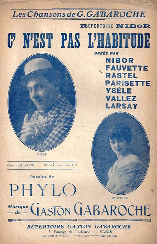 Revenons à "Elle ne veut pas que je sois jaloux !". Nibor, absent de Paris, ignorait tout de cette cuisine "dorinesque". Quant à, moi, peu de. temps après je rentrai à Marseille. Un Jour je vois, .sur les affiches de l' Alcazar, le nom de Nibor en vedette. Je pensais : "Peut-être, malgré tout chante-t-Il la chanson !... Qui sait !" J'allai au "Noailles" où Nibor, arrivé du matin même, était attablé à la terrasse. Je m'avançai sers lui, souriant, la main tendu. Mais lui sur un ton courroucé : "Monsieur ! je ne serrerai plus votre main ! ... Vous êtes un malhonnête homme !" Je tentai de me justifier ... C'était Dorin qui... Moi, je n'y étais pour rien... Il n'avait qu'à se renseigner...