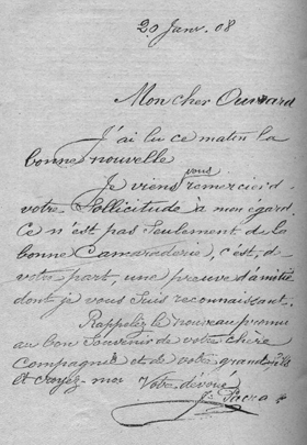 pas très sérieusement occupé, comme le prouve la lettre de remerciements reproduite ci-dessous et signée dudit camarade Pacra père.