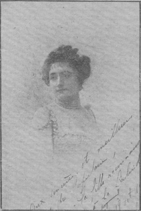 En 1894, je la vis à l'Eldorado chantant une chanson comportant l'imitation d'un chef d'orchestre, et, à cheval sur la boîte du souffleur, se livrant à des excentricités exagérées.
