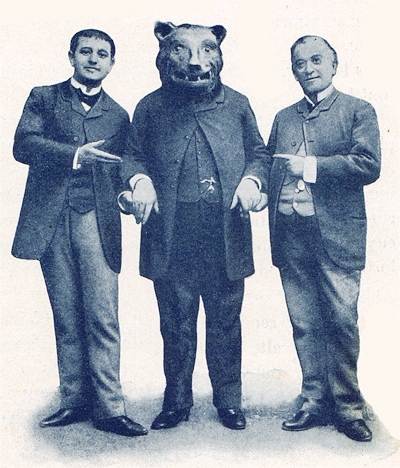 Leur première pièce à l'Eldorado fut Le Conciergicide, dont Francis Chassaigne avait fait la charmante musique. Depuis, leurs succès ne se comptent plus. Une amusante photographie (que nous donnons ici) les montre présentant un ours au directeur Renard. Celui qui posa l'ours et consentit à cacher sa bonne tête rabelaisienne sous celle de la bête féroce, c'était Chalmin. Chalmin, tout frais émoulu du Conservatoire, et qui fit retentir à l'