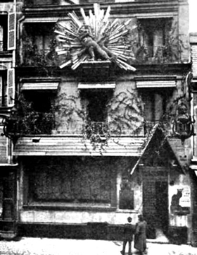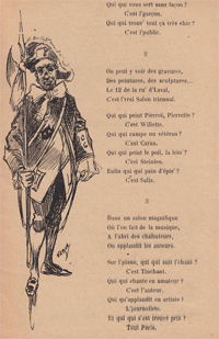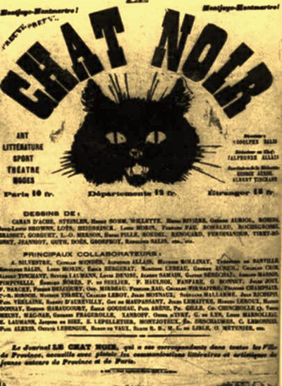 Issu du régiment et cherchant sa voie, Rodolphe Salis gagnait sa vie en peignant (et surtout en faisant peindre) des chemins de croix et des objets de piété lorsque l'idée lui vint de créer un café "du plus pur style Louis XIII... avec un lustre en fer forgé de l'époque byzantine et où lesgentilshommes, les bourgeois et manants seraient dorénavant invités à boire l'absinthe habituel de Victor Hugo (celle que préférait Garibaldi) et de l'hypocras dans des coupes d'or". - De Louis XIII, un fauteuil aux pieds vaguement tournés servait de trône dans un coin, des coupes d'or naturellement, il n'y en avait pas ; quant à l'hypocras, ce n'était, au début, qu'une vilaine piquette servie dans un décor plus que sommaire : les murs avaient été peints à la hâte, les cadres étaient vides mais l'esprit y était. - Preuve : à la porte, Salis avait eu l'idée de placer un Suisse splendidement chamarré, couvert d'or des pieds à la tête, chargé d'accueillir la meilleure clientèle tout en laissant les "infâmes curés et les militaires" à la porte mais chargé également de toujours laisser passer les peintres et les poètes.