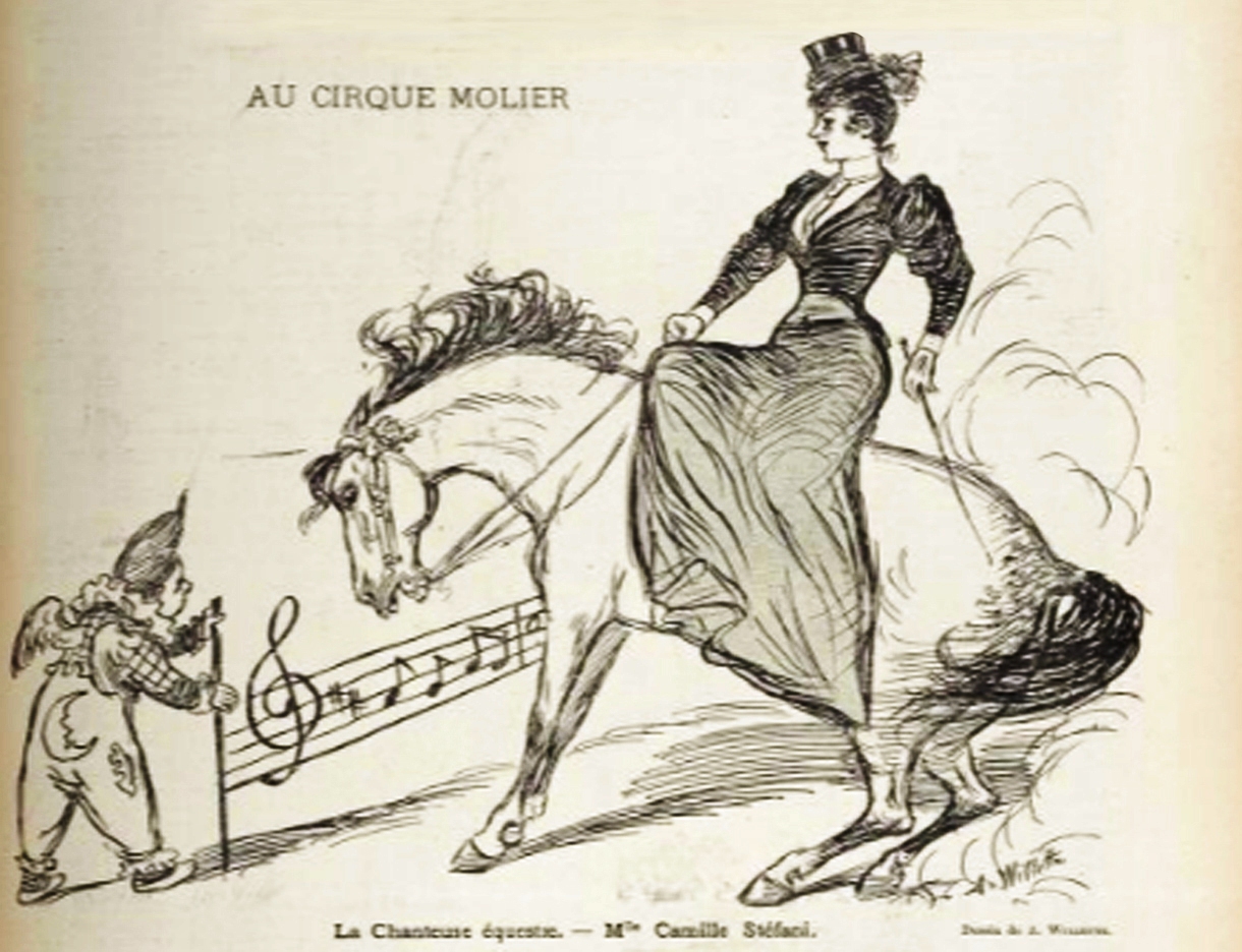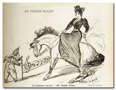 Dans le Courrier français du 23 août 1891, on lit : "lorsqu’elle entre en scène, a un petit air de n’y pas toucher et d’être très modeste qui lui attire aussitôt toutes les sympathies" et dans celui du 16 août 1891, on apprend que Camille Stefani s'est faite très applaudir à Moscou, Saint-Pétersbourg et jusqu'en Crimée. L'année suivante, en février, revenue de Marseille et Montpellier, elle crée "Boubou-baba"à l'Eldorado. Et toujours en 1892, en juin, au Cirque Molier, un cirque privé, c'est le triomphe ! Avec une chansonnette dont elle est l'auteur des paroles, "Le chameau", une chansonnette des plus suggestives qu'elle interprète à cheval devenant ainsi, la "chanteuse équestre" !.