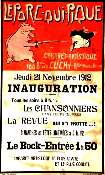 Marc Marie Millereau, dit Maurice Mérall inaugure le 21 novembre 1912, le Cabaret du Porc qui Pique [3], pour y donner la revue avec de jeunes chansonniers, tels Saint-Granier, Gaston Gabaroche ou Pierre Dac.