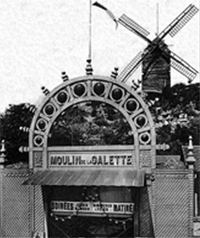 Valentin (le Désossé) à leurs débuts. Ouvert 4 jours par semaine jusqu'en 1914. Sauvé de la démolition, en 1915, déplacé en 1924, music-hall jusqu'en 1966, salle pour émissions radio-télé (de feu l'O.R.T.F.) jusqu'en 1964, restauré en 1978. Ses ailes recommencent à tourner en 2001, date où on l'intègre à une résidence privée.